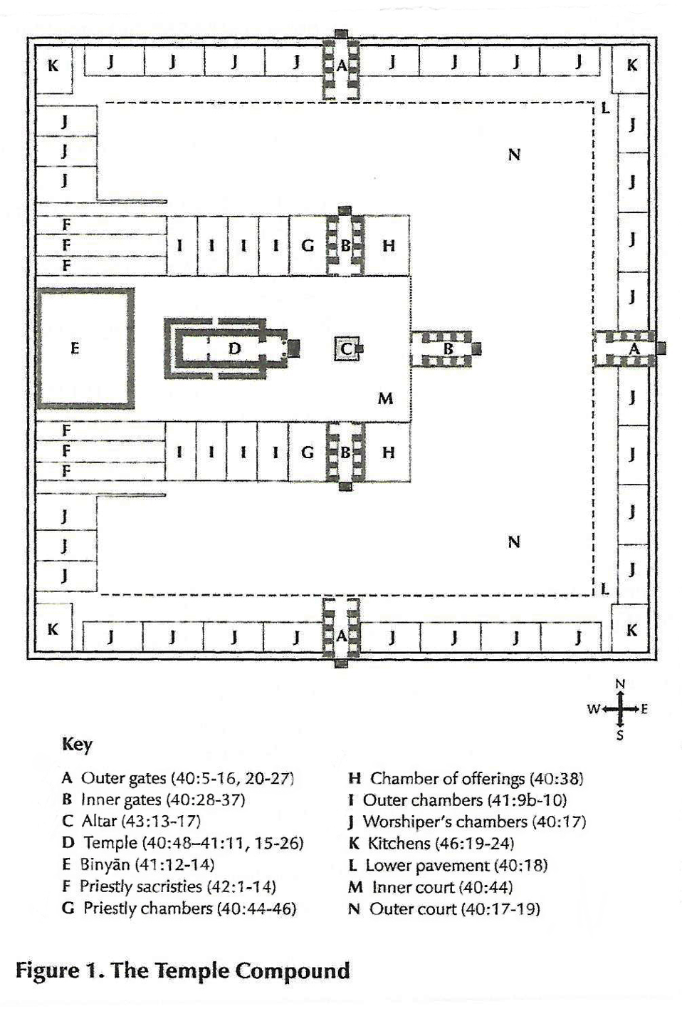 Es útil referirse al diagrama a continuación (Figura 1. El recinto del templo) mientras lee las distintas medidas.